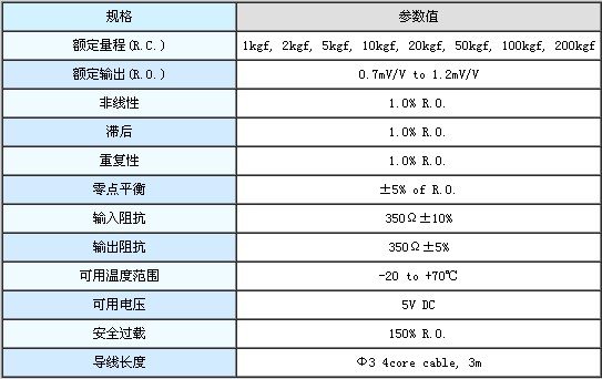 CMM2-20kgf稱重傳感器技術(shù)參數(shù):