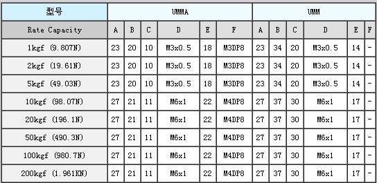 Dacell UMMA-20kgf傳感器技術(shù)參數(shù):