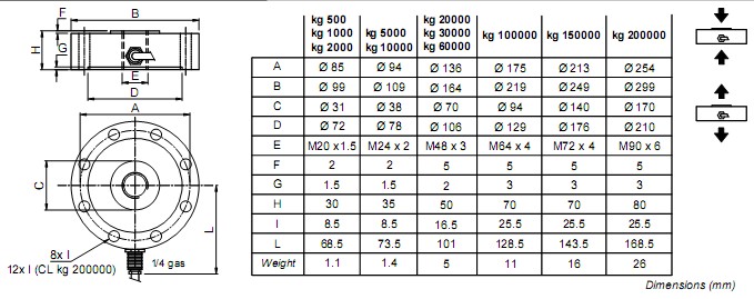 意大利Laumas CL-5000kg傳感器尺寸圖: