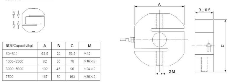 鋼制S型稱重傳感器,測量方式為剪切應力測量,承受拉、壓外力均可,輸出對稱性好,結(jié)構(gòu)緊湊,安裝方便