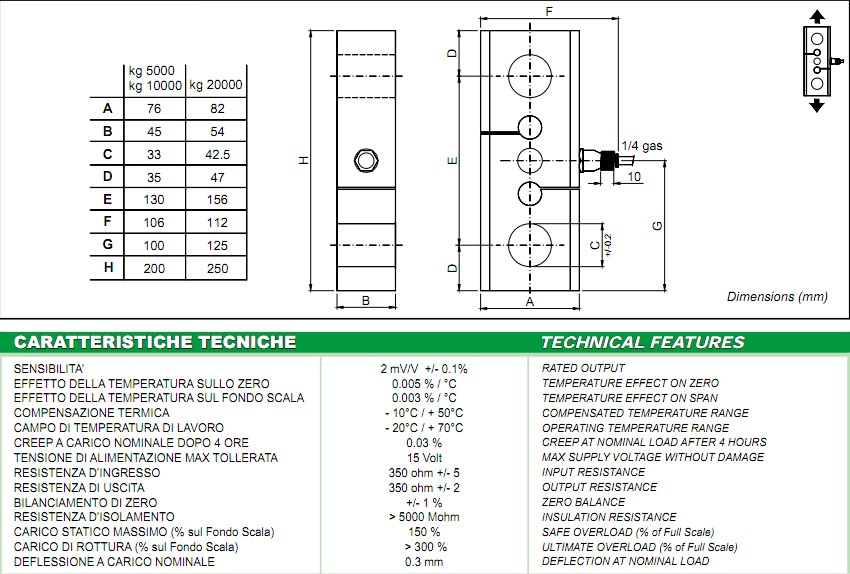 意大利Laumas TAL-5000kg稱重傳感要特性