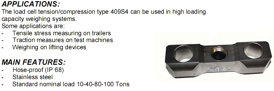 測(cè)力傳感器的張力/壓縮類型409S4可以在高負(fù)載容量的稱重系統(tǒng)中使用