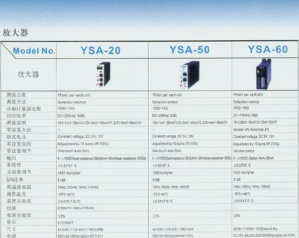 YSA-20A,SETech YSA-50A放大器參數(shù):