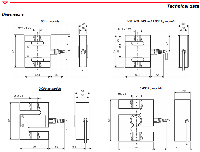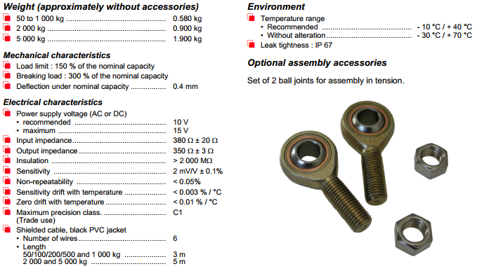 量程: 50kg, 100kg, 200kg, 500kg, 1000kg, 2000kg,5000kg