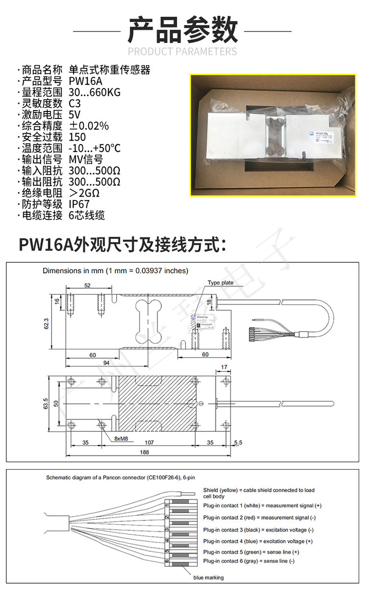 PW16AC3/150KG稱重傳感器6-wire circuit