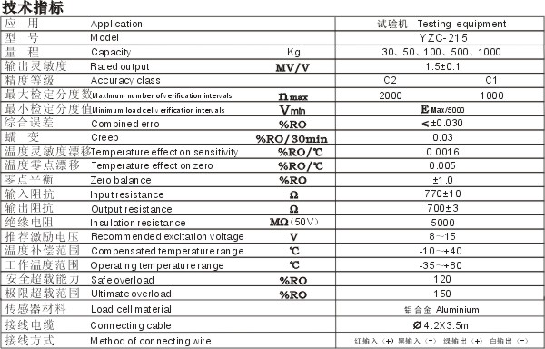 廣測(cè)GUANGCE YZC-215B輪輻式稱重傳感器技術(shù)指標(biāo):