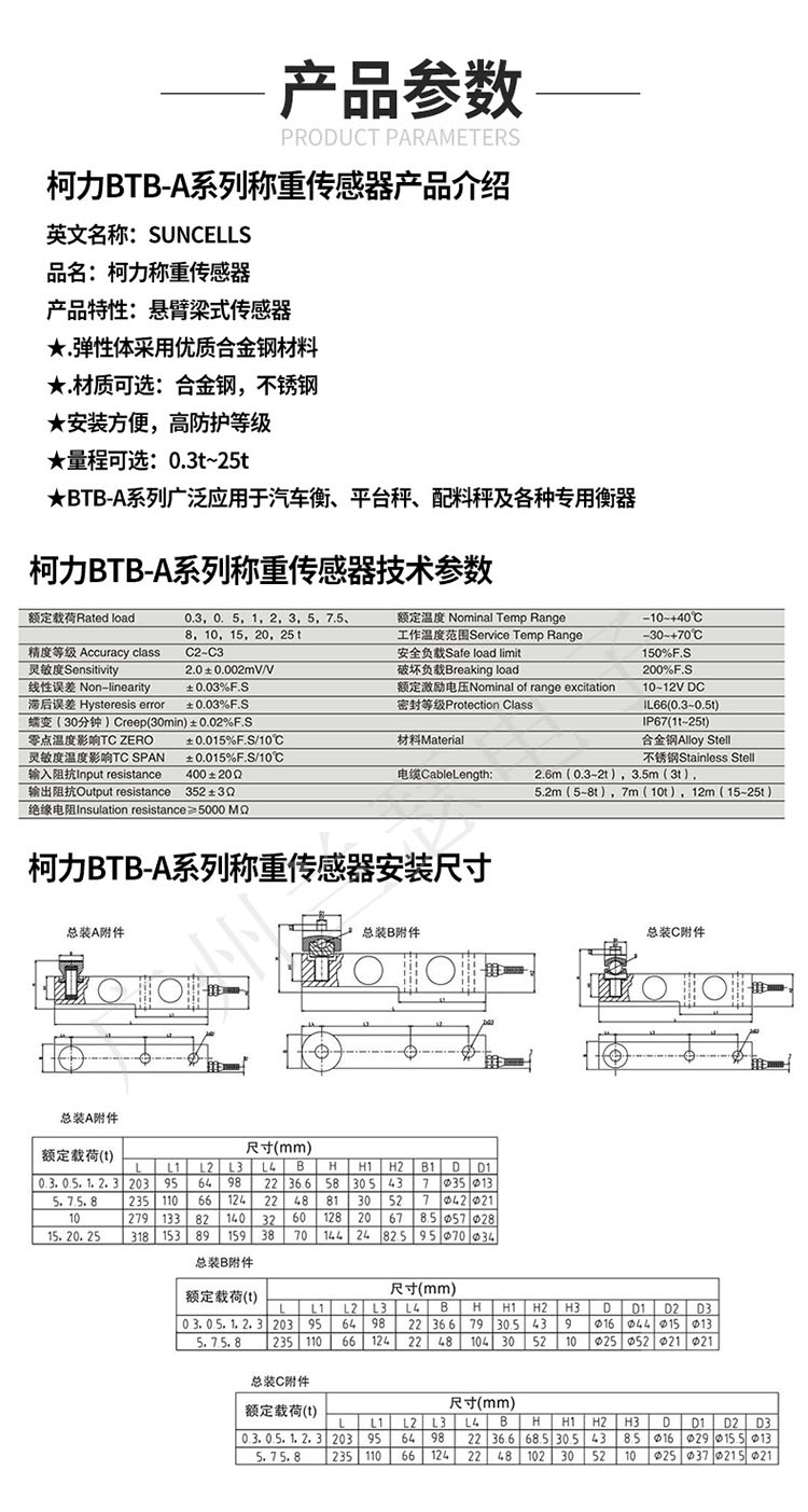 BTB-3T,美國SUNCELLS BTB-3T稱重傳感器