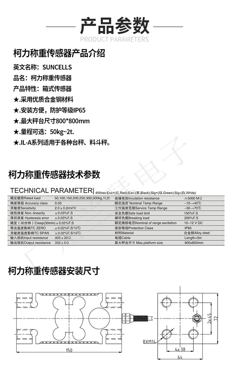 寧波柯力 IL-150KG稱重傳感器產(chǎn)品參數(shù):