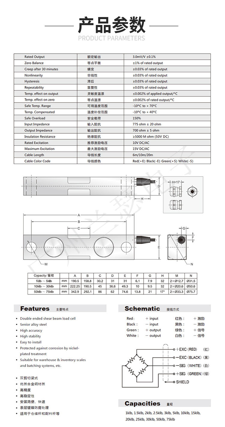 美國傳力DBS-10Klb稱重傳感器技術(shù)參數(shù):
