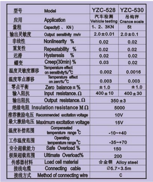 廣測(cè)GUANGCE YZC-528稱(chēng)重傳感器技術(shù)參數(shù)