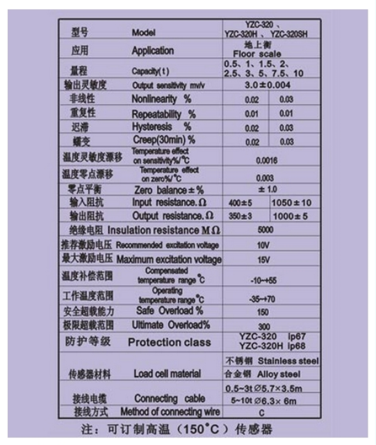 廣測GUANGCE YZC-320稱重傳感器技術參數(shù)