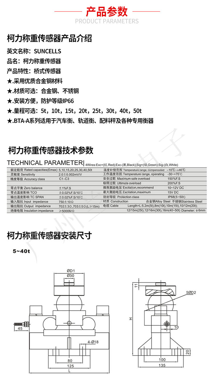 | 寧波柯力 BTA-D-30t 雙剪切梁式稱重傳感器 |