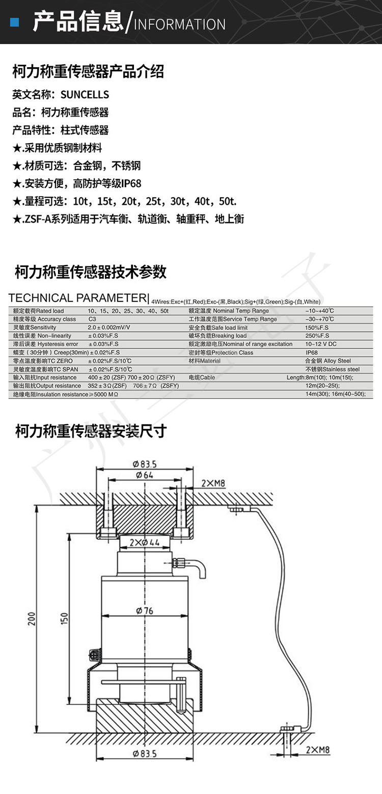 柯力ZSF-D稱重傳感器主要參數(shù):