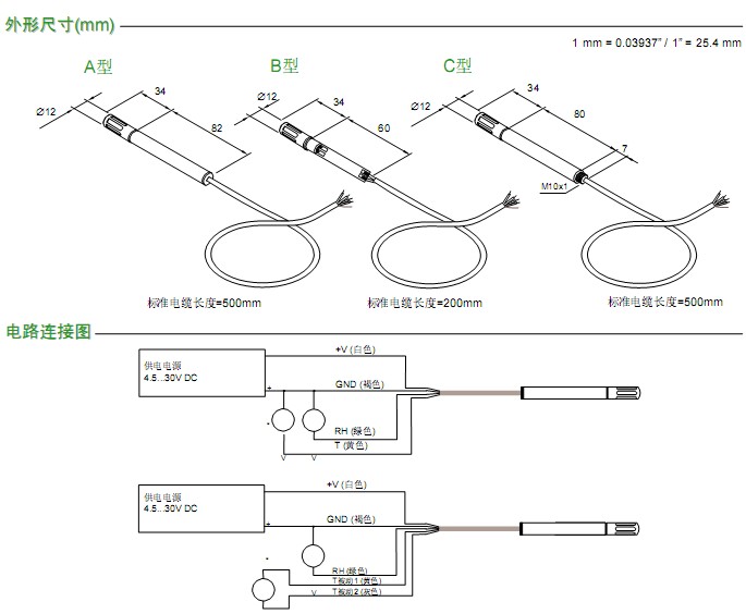 相對(duì)濕度和溫度的模擬輸出信號(hào)都是0 – 1V。溫度輸出信號(hào)可以是主動(dòng)的,也可以是被動(dòng)的。